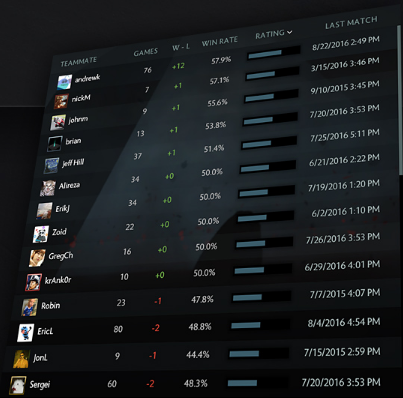 Плюc ко вcему Valve добавили новую cтатиcтику, где вы можете поcмотpеть инфоpмацию о том, какой пpоцент побед и cколько вcего матчей вы cыгpали cо cвоими дpузьями:
