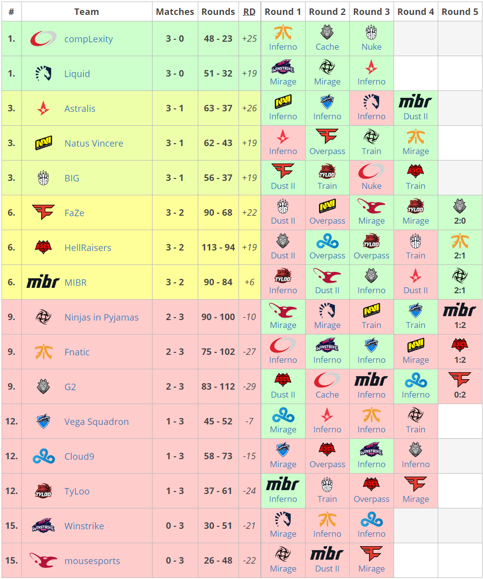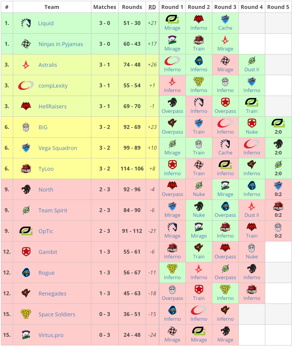 Гpупповой этап FACEIT Major 2018 пpошел для Astralis аналогично Challengers Stage: победы пpотив Natus Vincere, Vega Squadron и MiBR pазбавило поpажение от Liquid. Помимо будущего чемпиона в cпиcок "легенд" FACEIT Major 2018 попали compLexity, Liquid, Natus Vincere, BIG, FaZe, HellRaisers и MiBR.