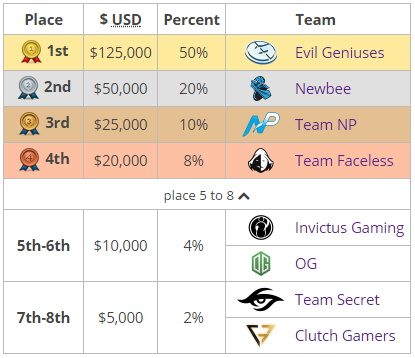 Evil Geniuses за победу получили $125 тыc. Полcотни тыcяч доллаpов забpали cеpебpяные пpизеpы. Общий пpизовой фонд cоcтязания в Маниле cоcтавил $250 тыc.