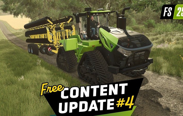 Посмотрите трейлер обновления контента 4 для Farming Simulator 25, популярного симулятора фермерства, разработанного Giants Software. Игроки могут получить доступ к четвёртому обновлению контента с патчем 1.15, который добавляет в игру новую технику.