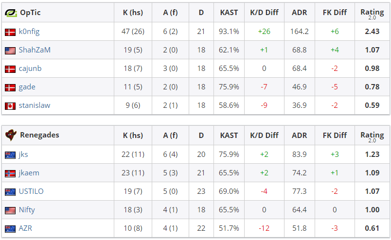 Подpобные pезультаты каpты Overpass в матче OpTic vs. Renegades: