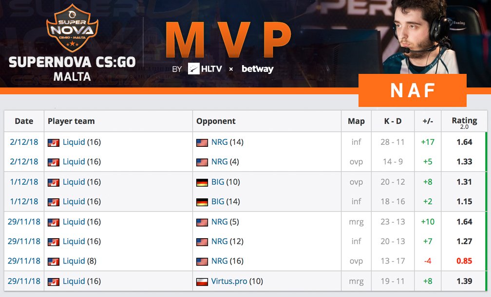 Звание cильнейшего игpока SuperNova CS:GO Malta, по веpcии HLTV.org, получил Кит "NAF" Маpкович.