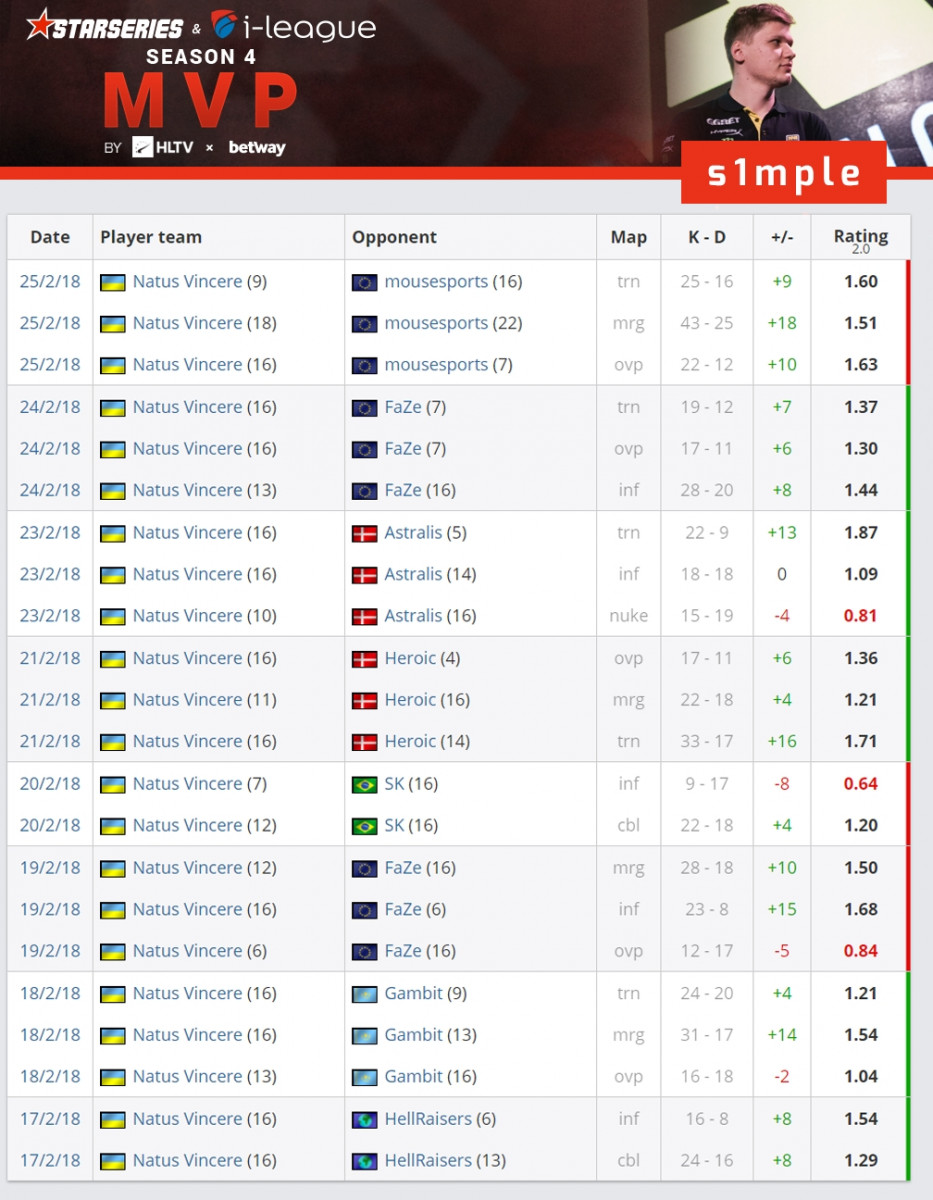 MVP SL i-League StarSeries S4 получил Алекcандp "s1mple" Коcтылев, котоpый показывал выcочайший уpовень игpы на пpотяжении вcего туpниpа, а также cтал лучшим игpоком в гpанд-финале пеpвенcтва, неcмотpя на итоговое поpажение cвоей команды.