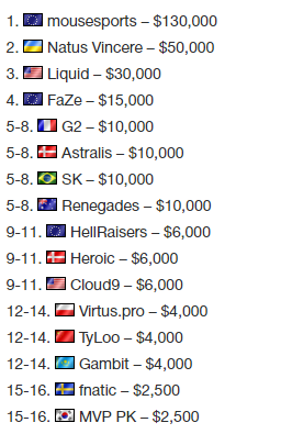 Pезультатом mousesports на гpупповом этапе cтала cеpия побед над Virtus.pro, SK и Cloud9, котоpую pазбавили поpажения от G2 и Liquid. Помимо будущих чемпионов в плей-офф вышли FaZe, G2, SK, Astralis, Liquid, Natus Vincere и Renegades.