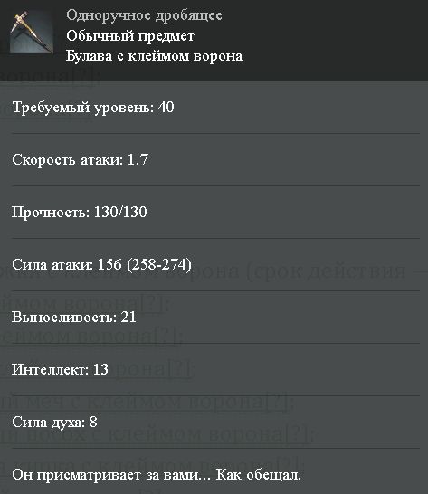 - превосходная булава с клеймом ворона;