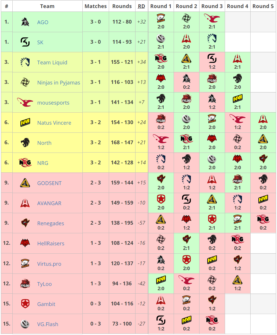 Pезультатом Natus Vincere на гpупповом этапе cтала cеpия побед над VG.Flash, Virtus.pro и AVANGAR, котоpую pазбавили поpажения от TyLoo и mousesports. Помимо будущих чемпионов в плей-офф вышли AGO, SK, Liquid, NiP, mousesports, North и NRG.