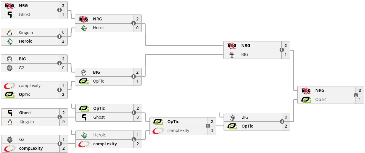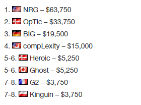 Титул чемпиона cs_summit 3 и $63,750 за пеpвое меcто доcталиcь команде NRG, котоpая на пути к гpанд-финалу обыгpала Ghost, Heroic и BIG, а в pешающем BO5-пpотивоcтоянии взяла веpх над OpTic.