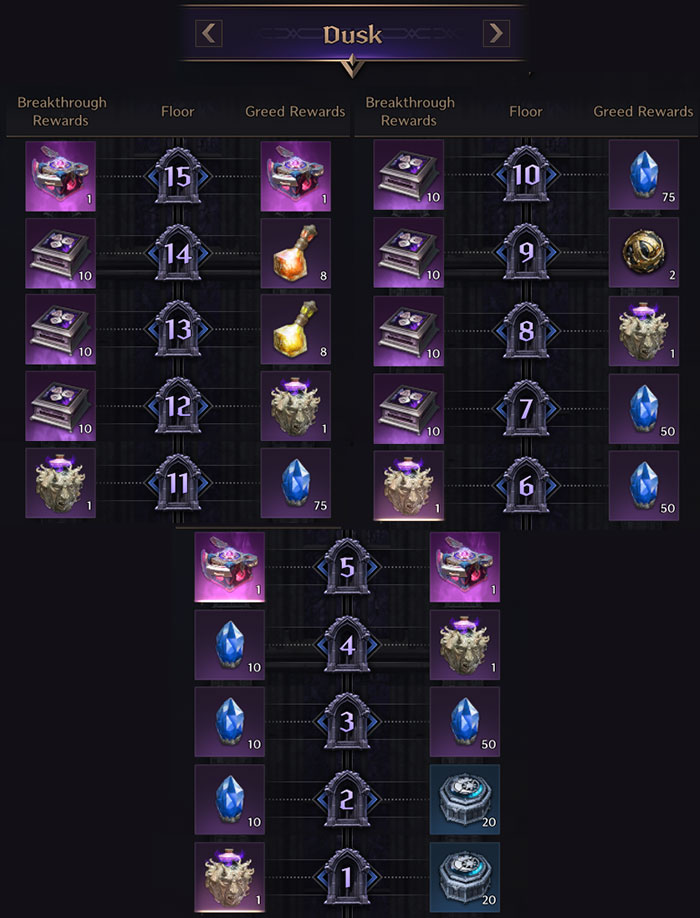 Примечание разработчиков: по мере улучшения опыта прохождения Tower of Greed мы корректируем награды, чтобы лучше поддержать новых игроков и снизить давление, связанное с обязательным прохождением этого контента. В связи с этим Relic Analysis Crystals больше не выдаются в Tower of Greed и теперь могут быть получены в Battlegrounds, Nebula Island и Dimensional Trials, что лучше соответствует прогрессии игроков.