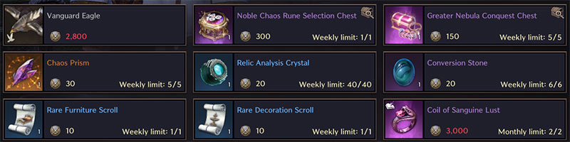 Relic Analysis Crystals теперь можно получить у Combat Coin Merchant, Nebula Stone Merchant и в Dimensional Trials.