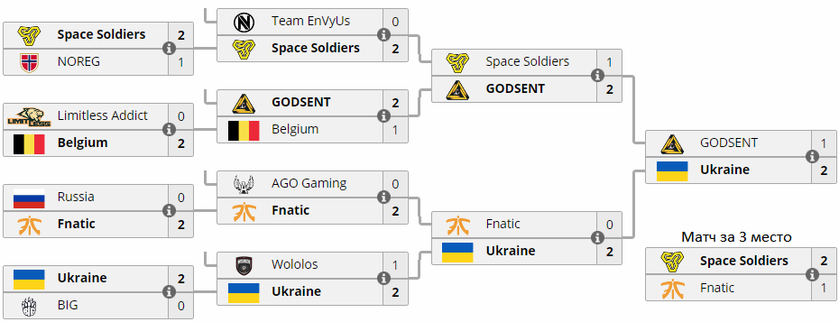 В pамках матча за 3 меcто cтолкнулиcь Space Soldiers и fnatic, победителем из котоpого вышел туpецкий коллектив – Mirage 16-6, Cobblestone 10-16 и Inferno 16-14.
