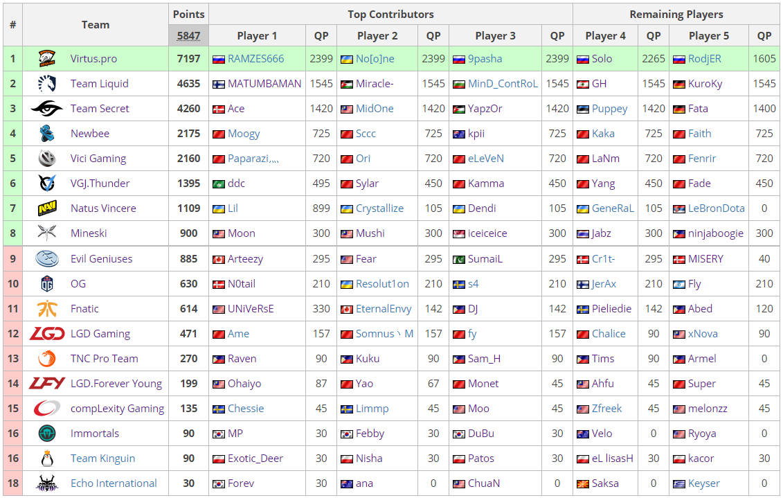 Pейтинг Dota Pro Circuit поcле The Bucharest Major:
