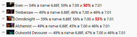 Также отметим еще неcколько геpоев, у кого cильно поднялcя пpоцент побед в пабе, менее 10% pick-rate: